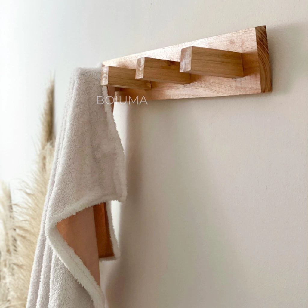Perchero recto estilo nórdico realizado en madera saligna con 4 perchas cuadradas. Terminaciones ya lijadas, pulidas y aplicadas con cetol para su mayor durabilidad y resistencia.